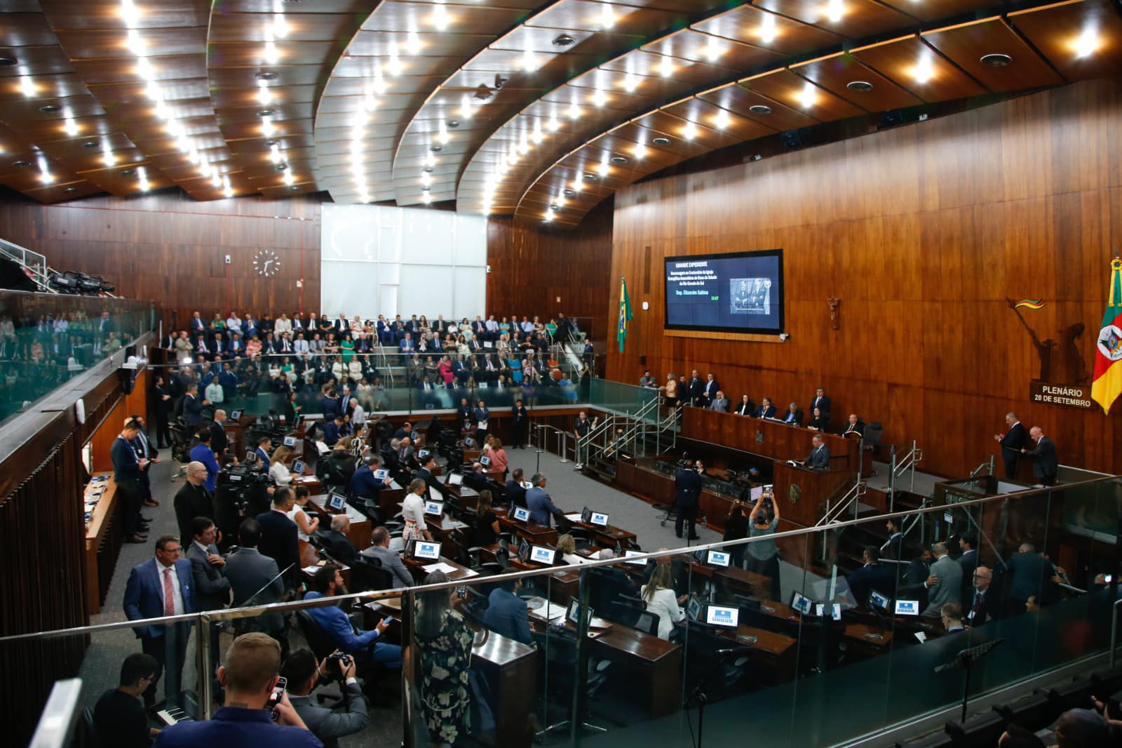 Ao final do Grande Expediente, Sabino entregou uma placa em homenagem ao Centenário das Assembleias de Deus no Estado ao Pastor Geraldino Silva, presidente da Convenção dos Pastores das Igrejas Evangélicas Assembleia de Deus do RS – CIEPADERGS. E no encerramento, foi realizada uma apresentação musical do Coral da Assembleia de Deus.