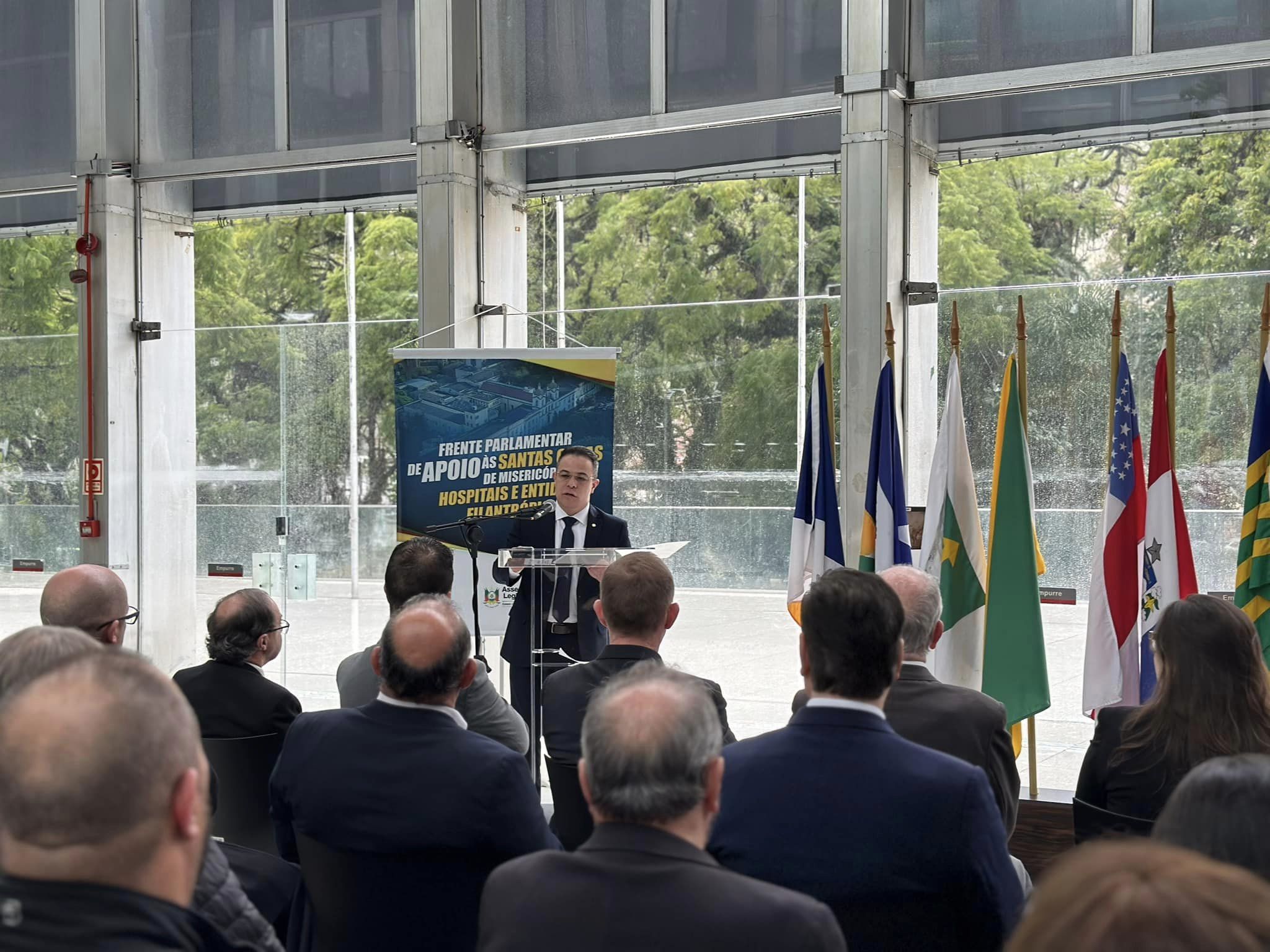 Nesta quarta-feira, 13 de setembro, foi realizada a cerimônia de reinstalação da Frente Parlamentar em Apoio às Santas Casas de Misericórdia, Hospitais e Entidades Filantrópicas, presidida pelo deputado Sabino. O evento foi realizado no Vestíbulo Nobre Érico Veríssimo da Assembleia Legislativa do RS e contou com a presença de diversas autoridades e representantes das entidades da área da saúde.