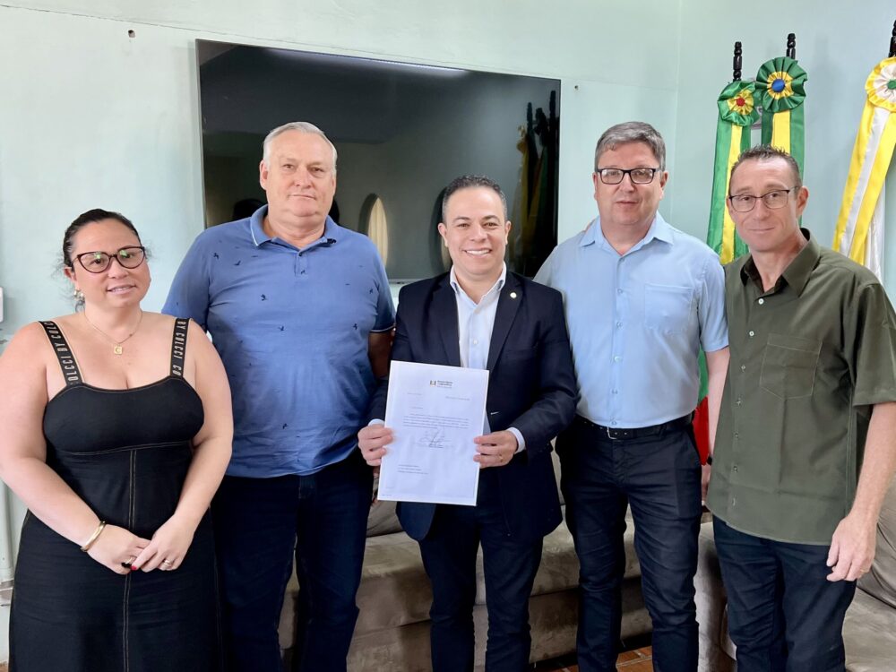 Nesta quinta-feira, 08 de dezembro, foi oficializada a entrega de demanda orçamentária, de autoria do deputado Sabino, no valor de R$ 99.666,00 (noventa e nove mil seiscentos e sessenta e seis reais), destinada para a saúde pública do município de Arroio dos Ratos. O recurso, que já está na conta da Prefeitura, será destinado para a aquisição de um aparelho de ultrassom para melhor atender os moradores da cidade. Segundo o deputado Sabino, “todo o trabalho é no sentido de auxiliar os municípios na área da saúde, sempre visando um atendimento de qualidade e um serviço que venha ao encontro do interesse público. Algumas cidades optaram por utilizar os recursos para a compra de veículos para transporte de pacientes que necessitam realizar consultas e exames fora de sua região. E outros municípios, como Arroio dos Ratos, preferem a compra de materiais e aparelhos para uso em suas unidades de saúde, assim ao invés de os munícipes se deslocarem para outras regiões, tem o serviço ao seu dispor na sua própria cidade. Vejo que esse recurso será muito bem utilizado”. O vice-prefeito Paulo Azzi também destacou a importância da compra de aparelhos para uso de pacientes, o que melhora o atendimento prestado e a qualidade de vida das pessoas. “Muito obrigado Sabino o valor destinado será utilizado pela Secretaria Municipal de Saúde, para a compra de um aparelho de Ultrassom. Esse equipamento será de grande valia para nós, vai fazer com que muitos munícipes não precisem se deslocar para outras cidades, tendo o conforto de fazerem os exames aqui. É mais um avanço para o município de Arroio dos Ratos.” Segundo o vereador Dilson Lemos, “o deputado Sabino é um grande parceiro na nossa cidade e sempre nos recebe muito bem em seu gabinete. Estive presente no seu gabinete solicitando esse recurso e hoje já é uma realidade. Muito obrigado, Sabino, o aparelho de ultrassom que está sendo adquirido será um ganho para os moradores do nosso município. O meu mandato de vereador aqui na cidade e o seu, na Assembleia Legislativa, têm trabalhado em conjunto para buscar melhorias para a nossa região e isso é muito importante para nós, mandatos de resultados que trabalham juntos”. Participaram do ato: vice-prefeito Paulo Azzi, procuradora Carmem Garcia, vereador Dilson Lemos e secretário de Administração Almir Júnior.