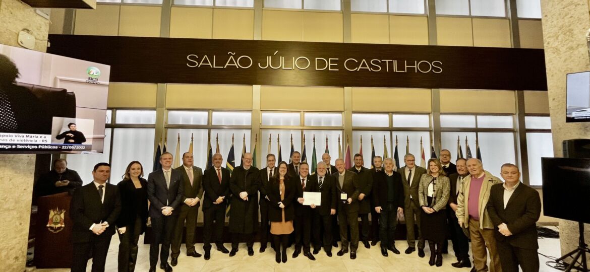 Nesta quarta-feira, 22 de junho, foi realizada a cerimônia de entrega da Medalha da 55ª Legislatura à Associação dos Notários e Registradores do Estado do Rio Grande do Sul – Anoreg/RS. O ato ocorreu no Salão Júlio de Castilhos da Assembleia Legislativa do Estado, por proposição do deputado estadual Elizandro Sabino, presidente da Frente Parlamentar da Justiça Notarial e Registral. A outorga reconhece todo o trabalho desenvolvido pela entidade, criada com o objetivo de representar os notários e registradores, e que desempenha um papel fundamental na sociedade gaúcha. “Venho percorrendo cada canto do nosso Rio Grande, conhecendo a realidade dos ofícios notariais e registrais de grande, médio e pequeno porte, e sendo a voz da categoria nesta casa. A referida homenagem se dá em virtude de todo um trabalho realizado pela Anoreg. Trabalho que temos acompanhado de perto a partir da Frente Parlamentar. A Anoreg atua incansavelmente para discutir temas de interesse da classe notarial e registral, buscando oferecer orientações e soluções aos associados e visando beneficiar o interesse público. É uma entidade que presta um valioso serviço para todos”, destacou o deputado Sabino, proponente desta homenagem. Segundo o presidente da Anoreg/RS, João Pedro Lamana Paiva, “saber que uma entidade que tem 25 anos de atuação e que representa os notários e registradores, transfere segurança jurídica e paz social para todos, recebeu uma homenagem desta natureza é gratificante. Com muita honra, a Anoreg/rs recebe a Medalha da 55ª Legislatura por iniciativa do nobre deputado Elizandro Sabino, presidente da Frente Parlamentar da Justiça Notarial e Registral, que muito tem contribuído para a melhoria da prestação dos nossos serviços. Ressalto que se trata da primeira Frente Parlamentar em nível Estadual e que, ao longo dos últimos anos, tem se mostrado ativa para enfrentar problemas e encontrar soluções, tendo uma atuação na busca do aperfeiçoamento das atividades extrajudiciais”. A Associação dos Notários e Registradores do RS, fundada em 1º de fevereiro de 1997 pelo Colégio Notarial do Brasil Seção Rio Grande do Sul (CNB/RS) e pelo Colégio Registral do Rio Grande do SuL, é a entidade representativa dos notários e registradores do Estado e integra o sistema nacional da Anoreg/BR. A Anoreg/RS nasceu com a finalidade de congregar as entidades de classe do estado e representá-las em temas de interesse comum, promovendo o aperfeiçoamento da legislação e a estruturação de suas atividades. Estiveram presentes na ocasião: Secretário Chefe da Casa Civil Adjunto, Bruno Pinto de Freitas; Superintendente da Receita Federal da 10° Região Fiscal, Altemir Linhares de Melo; Presidente do Colégio Notarial do Brasil – Seção Rio Grande do Sul (CNB/RS), José Flávio Buneo Fischer; Presidente da Associação dos Registradores de Pessoas Naturais do Rio Grande do Sul (Arpen/RS), Sidnei Hofer Birmann; Presidente do Colégio Registral do Rio Grande do Sul e da Associação dos Registradores e Notários do Alto Uruguai e Missões (ARN), Sergio Mersserschmidt; Presidente Instituto de Estudos de Protestos do Rio Grande do Sul (Iepro/RS), Romário Pazutti Mezzari; Presidente do Instituto de Registro de Títulos e Documentos e de Pessoas Jurídicas do Rio Grande do Sul (IRTDPJ/RS), Marco Antônio da Silva Domingues; 1° Tesoureiro do Instituto de Registro Imobiliário do Rio Grande do Sul (IRIRGS), Guilherme Pinho Machado; Presidente da Fundação Escola Notarial e Registral do Rio Grande do Sul (Fundação Enore-RS), Juliana Follmer Bortolin Lisboa; Diretora Operacional da Cooperativa de Economia e Crédito Mútuo dos Profissionais da Área Notarial e Registral (Coopnore), Deborah Real; Vice-Presidente do Sindicato dos Registradores Públicos do Estado do Rio Grande do Sul (Sindiregis), Edison Ferreira Espíndola; Vice-Presidente do Sindicato dos Serviços Notariais do Estado do Rio Grande do Sul (Sindinotars), Cledemar Dorneles de Menezes; Vereadora da Capital, Psicóloga Tanise Sabino; e José Carlos Breda, representando o Senador Luis Carlos Heinze. Clique no link e confira a cerimônia, na íntegra: https://www.youtube.com/watch?v=ZBlsAzomXBk