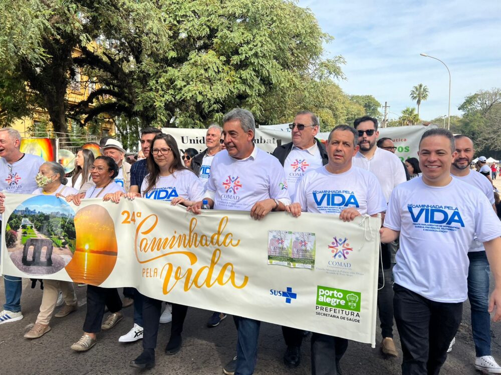 Na manhã deste domingo, 10 de julho, o Brique da Redenção de Porto Alegre foi palco de uma linda celebração da vida: a 24ª Caminhada pela Vida. O evento foi promovido pela Prefeitura Municipal, em parceria com o Conselho Municipal e Estadual de Álcool e Drogas e com a Câmara de Vereadores, através da Frente Parlamentar de Dependência Química, presidida pela Vereadora Psicóloga Tanise Sabino. O encontro reuniu um grande público, que contou com a presença do Deputado Estadual Elizandro Sabino; o Prefeito Sebastião Melo; o Secretário de Saúde Mauro Sparta; o Secretário Adjunto de Saúde Richard Dias; o Presidente do Conselho Estadual de Álcool e Drogas (CONED), Rodrigo Vasconcelos; o Presidente Conselho Municipal de Álcool e Drogas (COMAD), Rui Sindermann; o Diretor Técnico do Hospital Infantil Presidente Vargas, Dr. Alceu Gomes; e o servidor público, Sandro Cyntrão. Também estavam presentes servidores e entidades que prestam serviço de auxílio na prevenção da dependência química, entre elas o Conselho Municipal sobre Drogas de Porto Alegre – COMAD, o Núcleo de Apoio e Ressocialização Pessoal – NAREP, a Comunidade Terapêutica Mensageiros Cara Limpa, Comunidade Terapêutica Desafio Jovem Gideões, Comunidade Terapêutica Marta e Maria, Comunidade Terapêutica Novos Rumos, o Núcleo de Apoio ao Toxicômano e Alcoólatra – NATA, o Amor Exigente, Grupo Portas Abertas, o Café Convívio, entre outros.