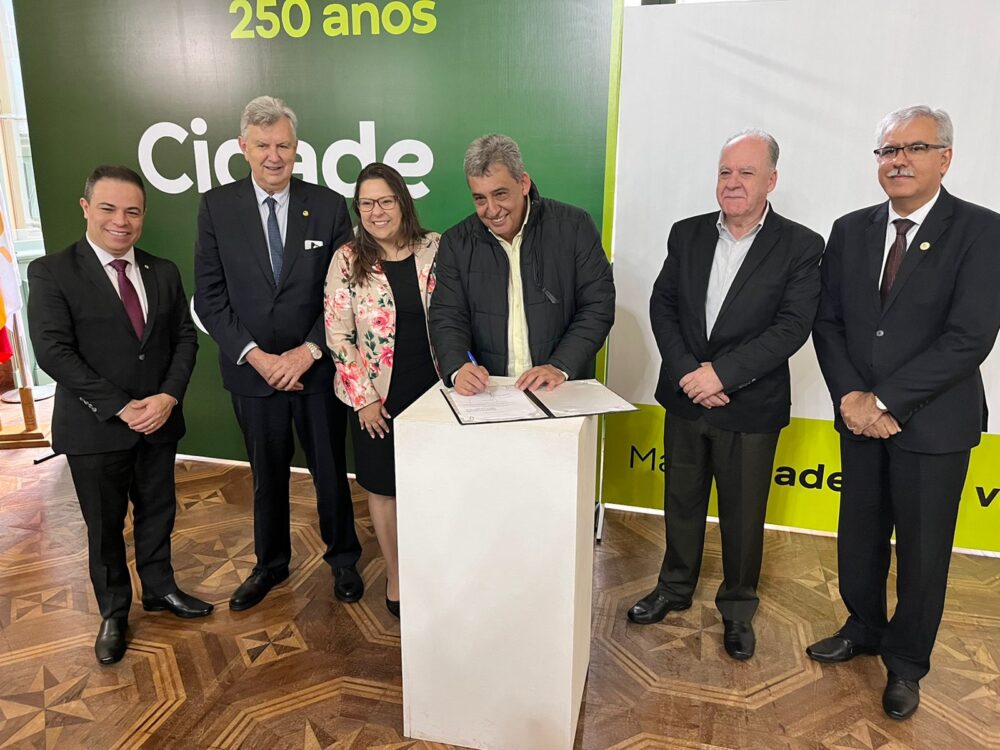 Nesta segunda-feira, 04 de abril, foi promovido o Ato de Sanção da Lei que inclui o Dia da Igreja Evangélica Assembleia de Deus no Calendário de Datas Comemorativas e de Conscientização de Porto Alegre, por proposição da Vereadora Psicóloga Tanise Sabino. Na ocasião, o Deputado Elizandro Sabino esteve presente representando a Assembleia Legislativa do RS, a qual já possui essa mesma Lei em vigor. A cerimônia aconteceu na Prefeitura de Porto Alegre – Paço Municipal e contou com a presença de pastores, líderes e poderes executivo e legislativo. O Deputado Estadual Elizandro Sabino ressaltou em sua fala o tempo em que foi vereador da Capital. “Prestei algumas homenagens à nossa igreja durante meus dois mandatos. Praticamente todos os anos fazíamos uma sessão solene e uma homenagem especial, uma, inclusive, na sede da igreja matriz. Parabenizo a proponente desta Lei, Tanise Sabino, que teve essa iniciativa tão especial, vereadora competente, que tem sido referencial na cidade. Prefeito Sebastião Melo, também destaco a nossa alegria em poder ter a parceria da Prefeitura Municipal de Porto Alegre junto à igreja”. Para a proponente da Lei, Vereadora Tanise, “nada mais justo do que a Casa do Povo homenagear a Igreja do Povo. Em Porto Alegre congregam em torno de 30 mil membros, no estado do Rio Grande do Sul em torno de 400 mil membros e no Brasil somos 22 milhões de membros. Não há uma vila sequer em Porto Alegre que não tenha a presença marcante da Assembleia de Deus”. Além disso, finalizou dizendo que “no país onde o povo não é ouvido e respeitado, há uma igreja que abre suas portas para ele. Uma igreja que tem uma credibilidade popular e mantém um diálogo permanente com o povo. Parabéns à Assembleia de Deus, por esta justa e merecida homenagem”, destacou. Luis Carlos Heinze, Senador da República, citou que “é um grande prazer estar presente nesse ato que está sendo sancionada a lei do Dia da Igreja Evangélica Assembleia de Deus, é muito importante o trabalho das igrejas, são referência a forma em que eles atuam hoje em cada canto do nosso País, Estado e nossas cidades. Ontem mesmo, estive na cidade de Sapiranga com a Vereadora Tanise, num congresso da juventude, em que reuniram quase mil jovens, e foi muito especial este momento. Parabéns Tanise e parabéns Prefeito Melo”. Para o Prefeito Sebastião Melo, “ser cristão é se colocar no lugar do outro, ter compaixão e se colocar no lugar daqueles que mais precisam. Eu vejo que esse braço social da igreja enxerga o que o poder público pode até enxergar, mas não consegue alcançar. Se eu puder fazer todas as parcerias possíveis com as igrejas, eu farei, porque dá certo, porque a igreja coloca amor, carinho, dedicação. Contem conosco, verdadeiramente, Tanise. Parabéns pela iniciativa”. Na ocasião, também estiveram presentes o Pr. Enilton Bitencourt, representando o Pr. Geraldino Silva, presidente da Ciepadergs – Convenção de Igrejas Evangélicas e Pastores da Assembleia de Deus RS; o Pr. João Oliveira de Souza, Pastor Presidente da IEAD Porto Alegre; o Pr. Claudemir Garcia, 1° Vice-Presidente da IEAD de Porto Alegre; Pr. Fernando Mesquita; entre outros Pastores, líderes e comunidade em geral.
