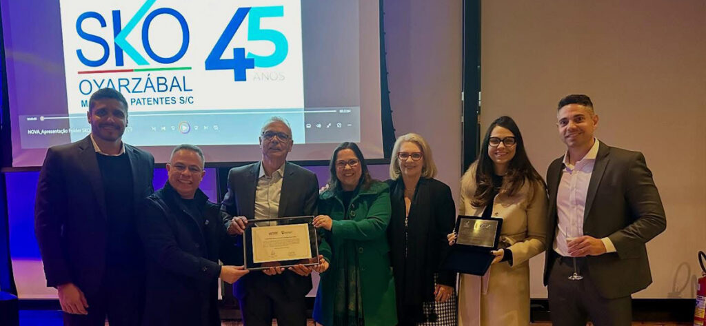 Tanise Sabino e Deputado Elizandro Sabino homenageiam os 45 anos da SKO Oyarzábal Marcas e Patentes em Porto Alegre