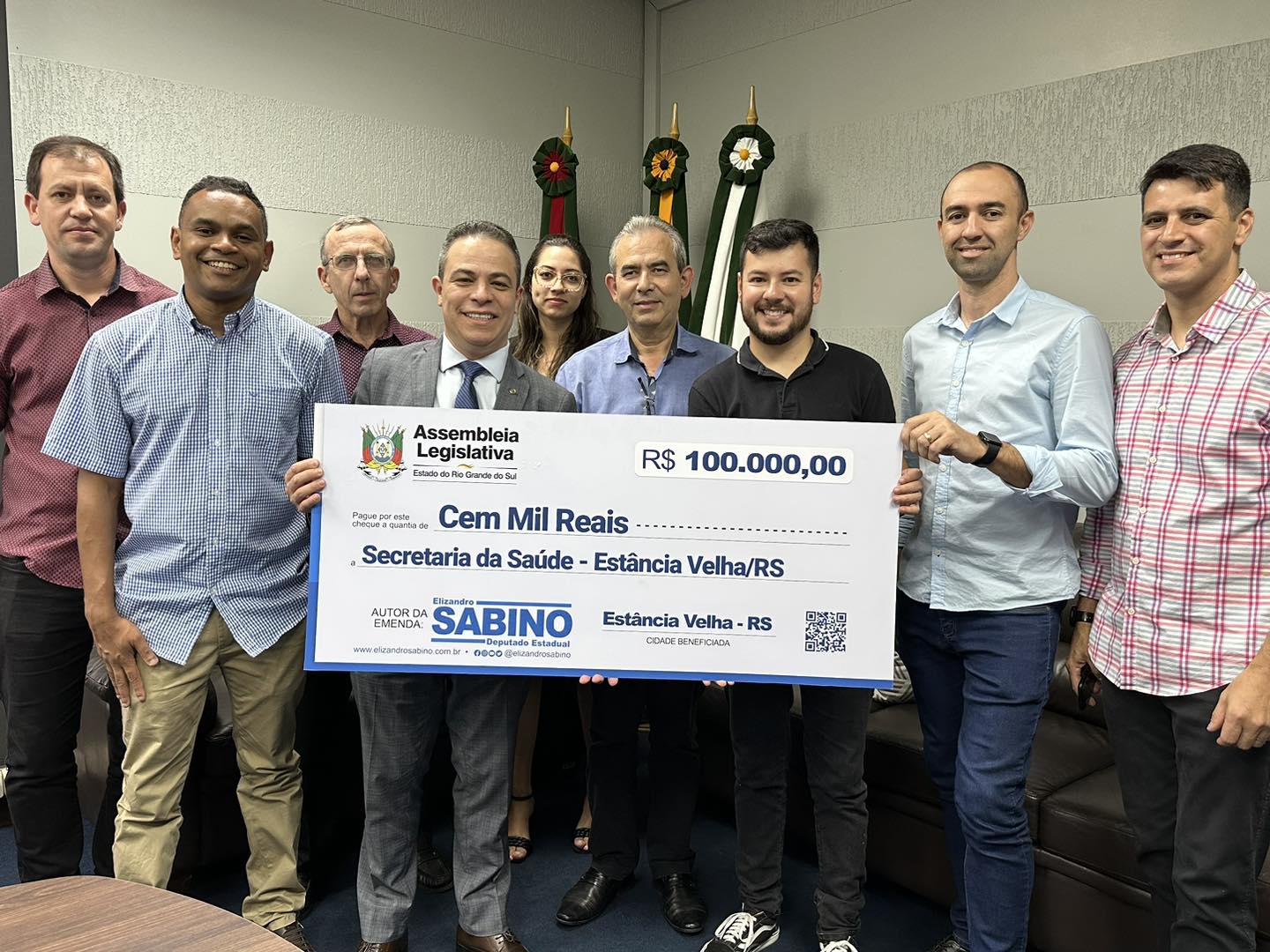 Nesta sexta-feira, 26 de maio, o deputado estadual Sabino oficializou a entrega de Emenda Parlamentar de sua autoria, no valor de R$ 100.000,00 (cem mil reais), para a cidade de Estância Velha. O recurso já está na conta da Prefeitura e será destinado para a Secretaria de Saúde.