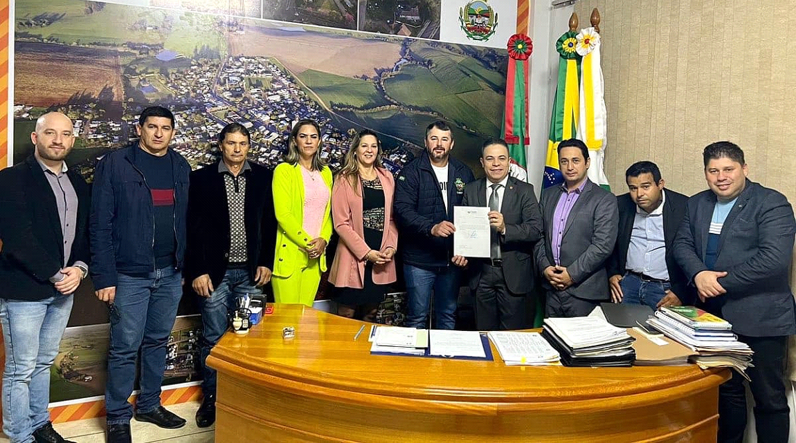 Participaram do ato: Prefeito Cleber Trenhago; Maria Luisa, 1° Dama e Secretária de Saúde; Dione Campos, Secretário de Assistência Social; Lucas Ribeiro, Secretário de Administração; Vereador Darci Dreher; Gilnei Barbosa, Presidente do Progressistas; Pr. Alex Camargo; e o Vereador Suplente Miguel Espíndola.