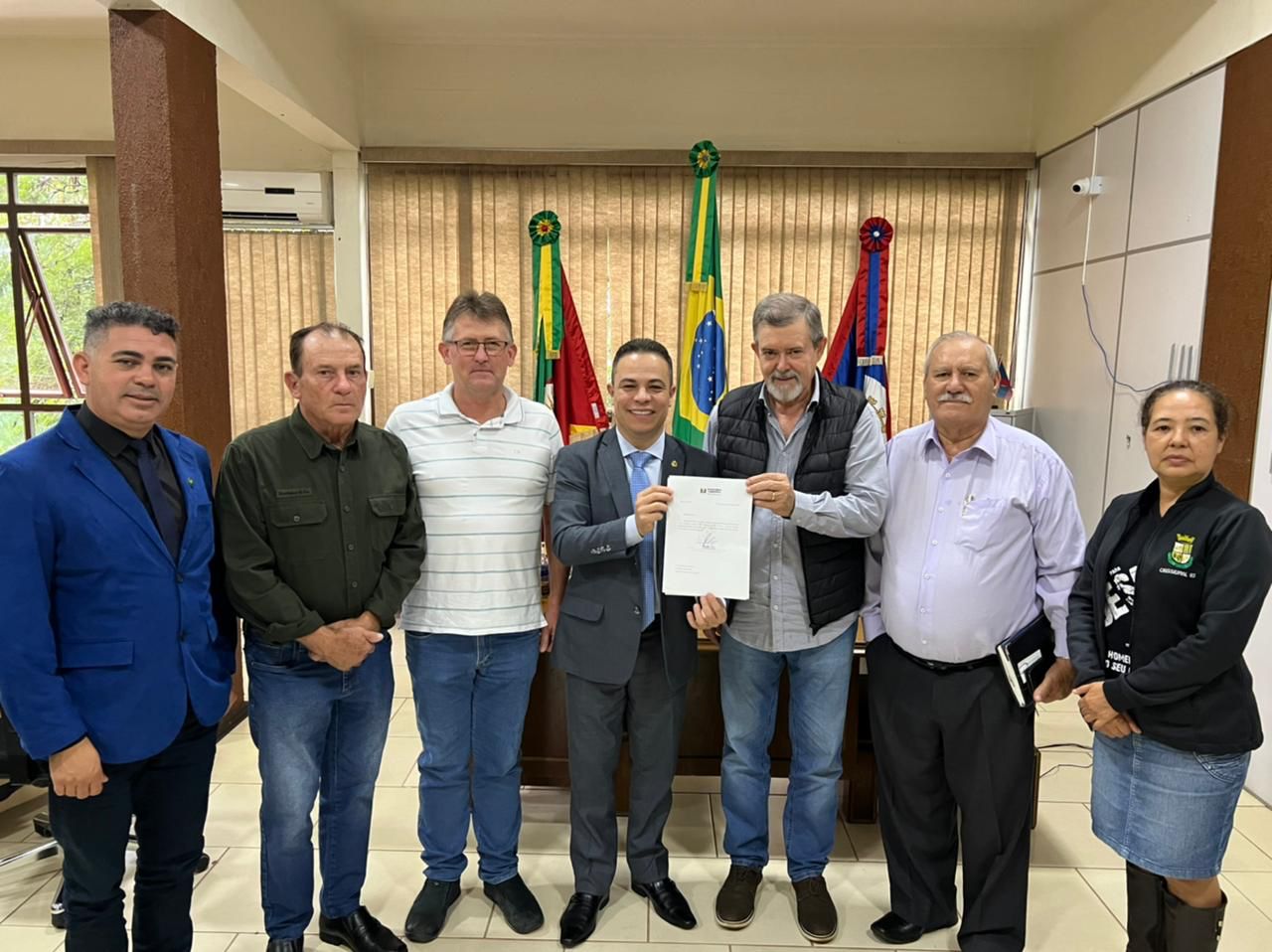 Na quinta-feira, 07 de abril, o Deputado Elizandro Sabino oficializou a entrega do valor de R$ 50.000,00 (cinquenta mil reais), emenda parlamentar de sua autoria, para a cidade de Crissiumal, localizada na região Noroeste do Estado do Rio Grande do Sul. Em reunião com o Prefeito Marco Nedel, os recursos foram destinados para a saúde pública do município.