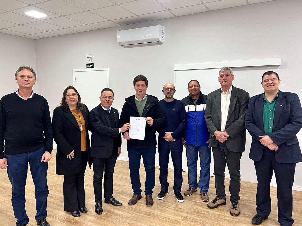 Participaram do ato: Prefeito Marcelo Caumo; Vereadora Tanise Sabino; Fernando Araújo; Jair; e a Executiva do PTB Municipal, Gerson, Presidente, e Darlei, Tesoureiro.