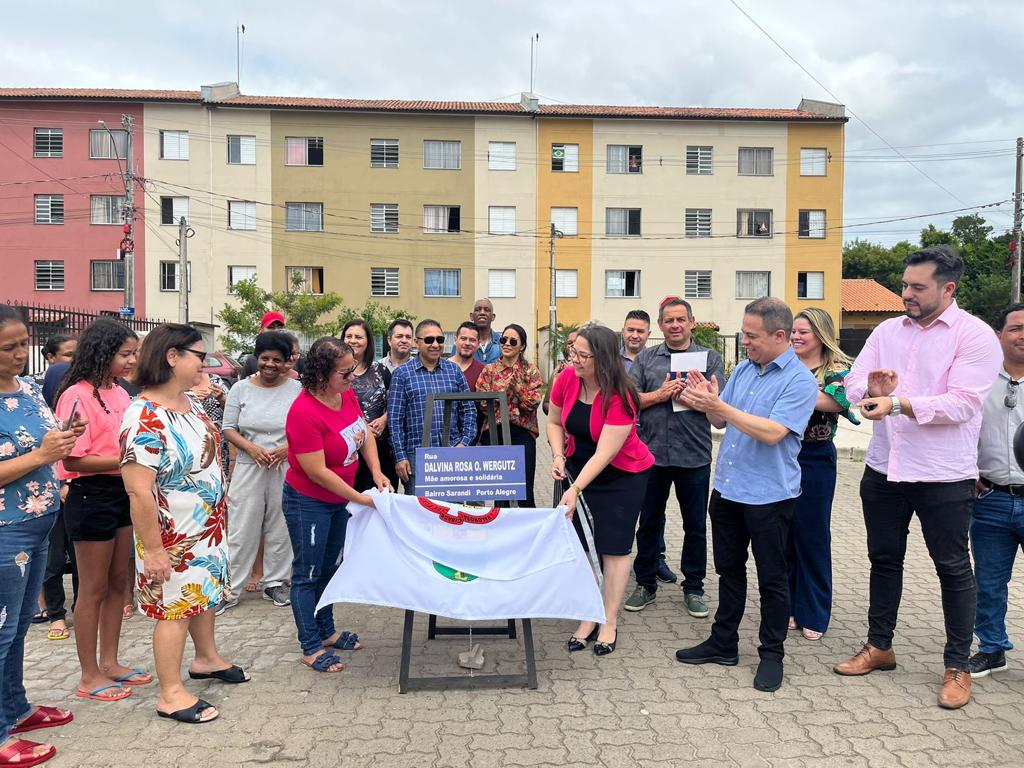 Na manhã deste sábado, 26 de novembro, aconteceu o ato que denomina a rua Dalvina Rosa de Oliveira Wergutz no bairro Sarandi, zona norte de Porto Alegre. A iniciativa, de autoria da vereadora Tanise Sabino, foi aprovada por unanimidade na Câmara de Vereadores e a Lei foi sancionada pelo Prefeito, em agosto deste ano. A inauguração da rua contou com a presença do Deputado Sabino, Secretário Adjunto da Saúde Richard Dias, familiares da dona Dalvina e lideranças comunitárias da região da zona norte.